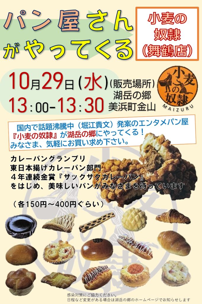 エンタメパン屋『小麦の奴隷』が湖岳の郷にやってくる(10/29)