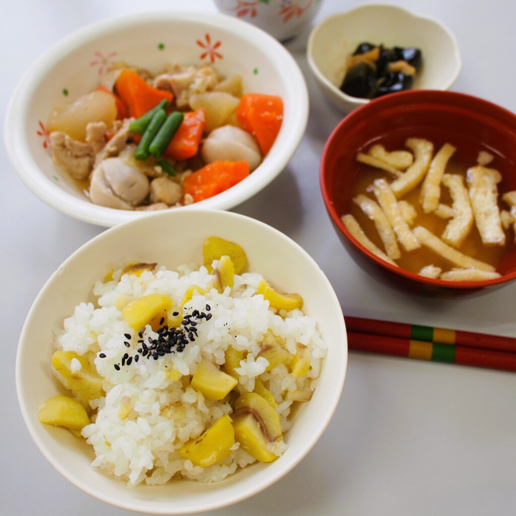 もう今年も2日目です。まだ皆さんはお休みですね…。湖岳の郷では、年末年始に関係なく職員が勤務して入所されている方と一緒にお正月を迎えております。そんなお正月気分が続く本日のお昼ごはんは”栗ごはん”が登場です。その他のメニューもお正月らしく昨日に続いて本日も楽しい美味しいお昼ごはんでした。(うまい)